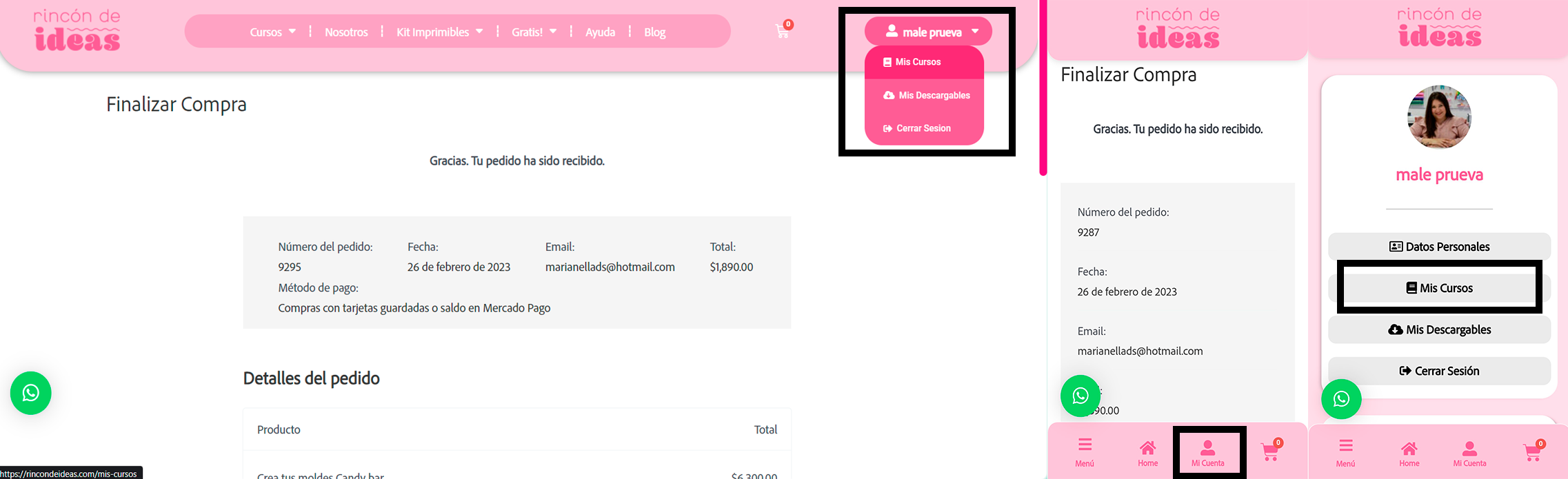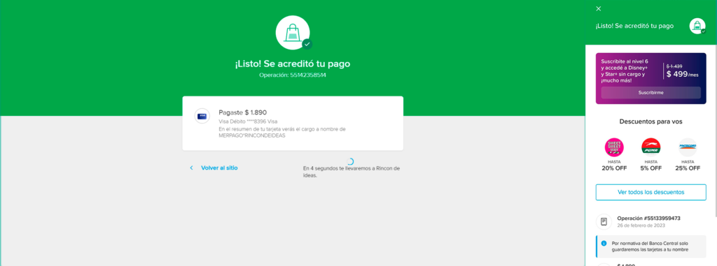 Una vez acreditado el pago, sea el medio que sea espera unos segundos que te redirige nuevamente a nuestra pagina web 🥰 (En el caso de tener algun error durante este proceso enviame un mensaje por whatsapp asi podemos ayudarte mas rapido) Ir al whatsapp de Rincon de ideas