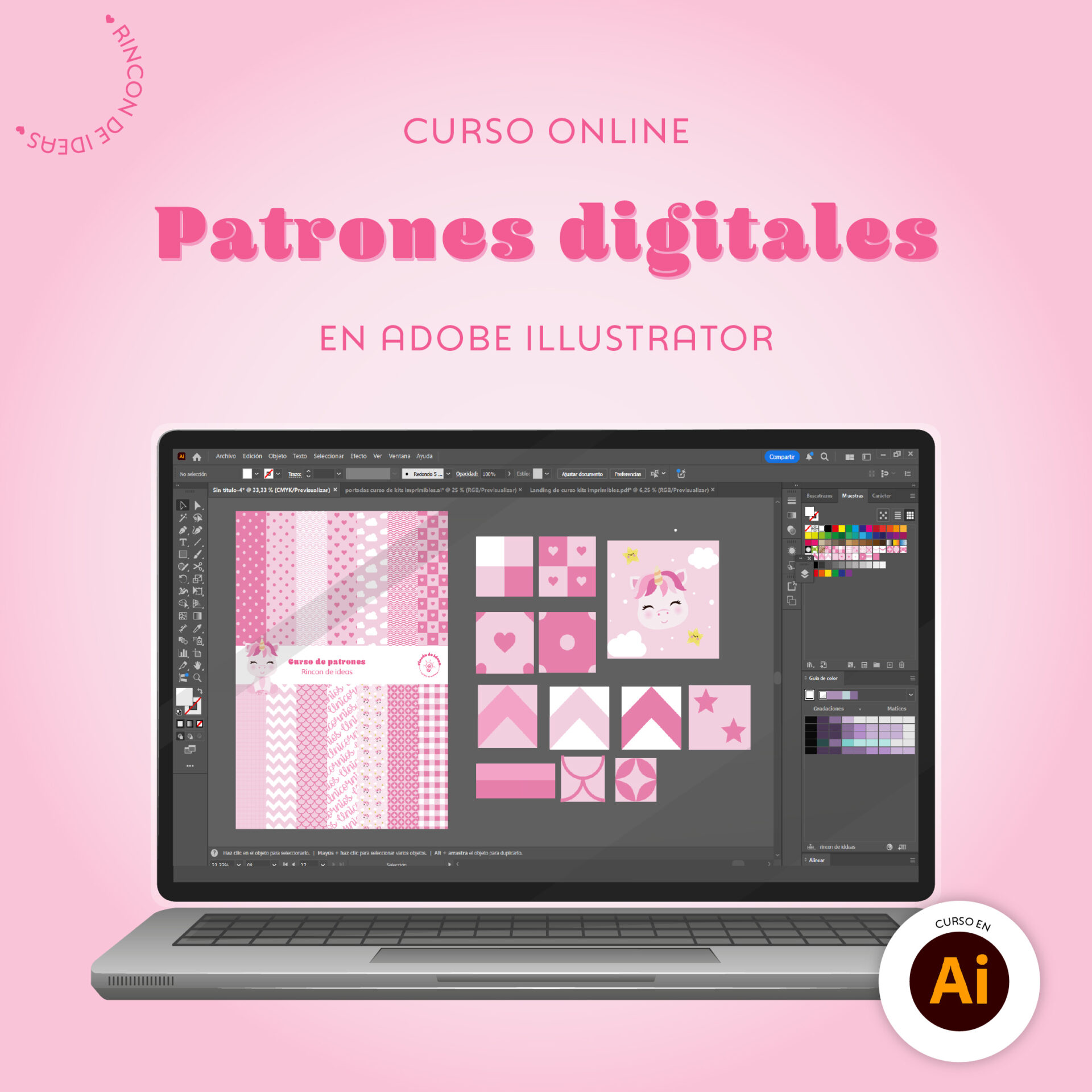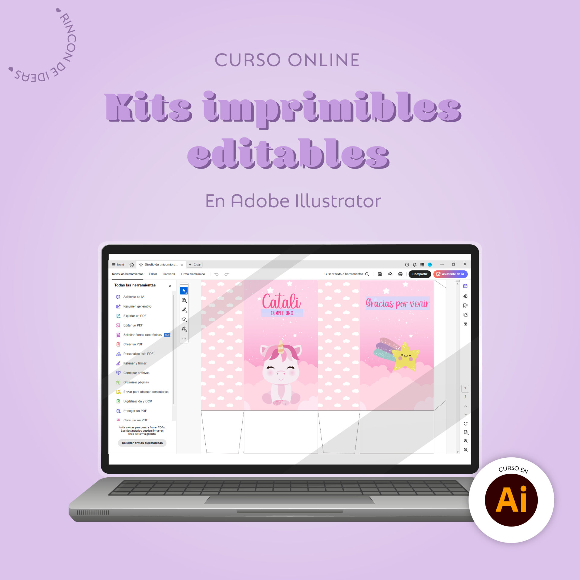 🌈En este curso vas a aprender a realizar a realizar kits imprimibles editables en Illustrator ✨